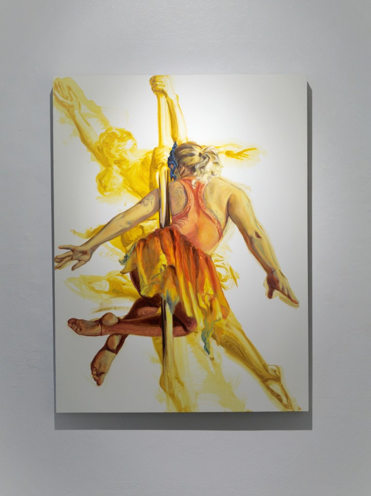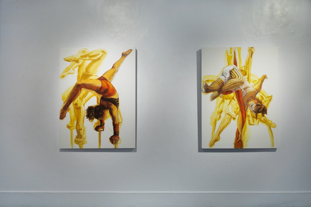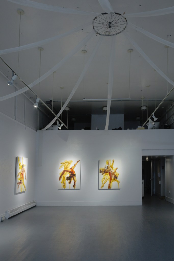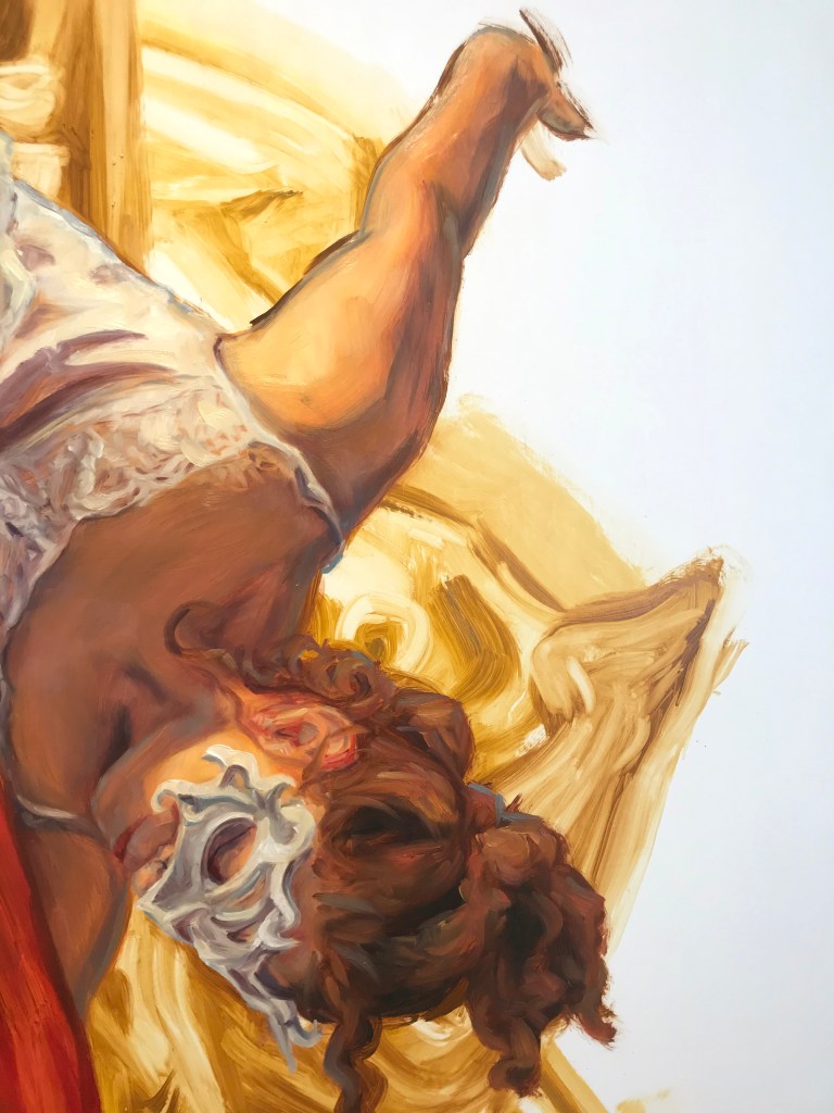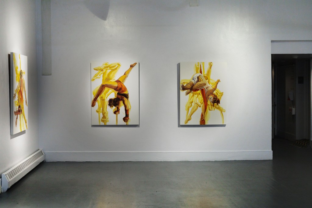 Each piece was painted in two sessions. The underpainting was a bit of an exercise in letting go, as each pose overlayed the previous one.