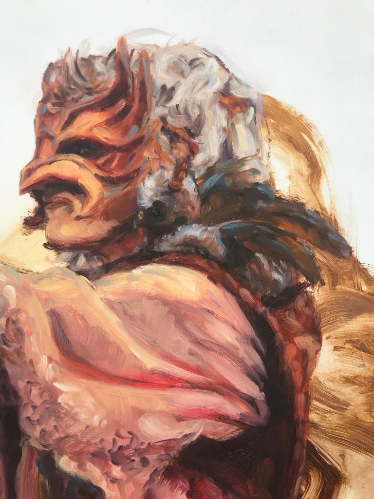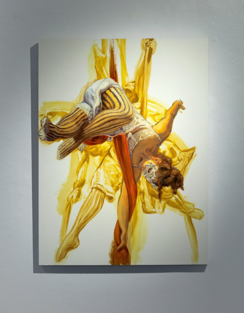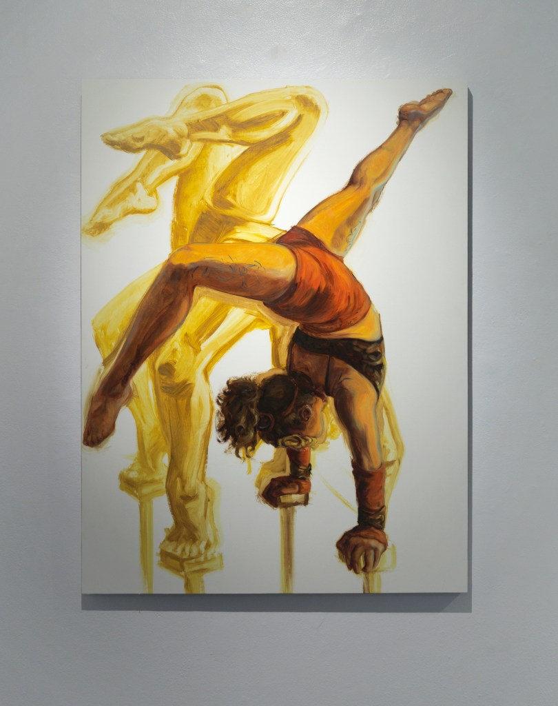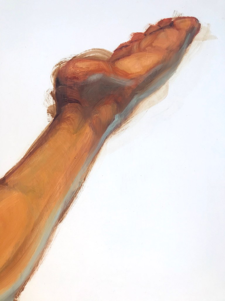 Each piece was painted in two sessions. The underpainting was a bit of an exercise in letting go, as each pose overlayed the previous one.