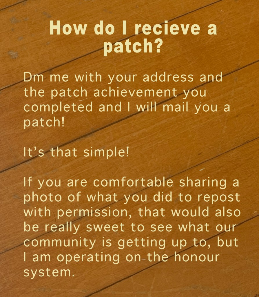 I’ve been running the project through instagram, but feel free to email with the details of the patch you earned if that is easier. You can choose one of the prompt ideas to follow, or something you believe falls under the premise of the patch.