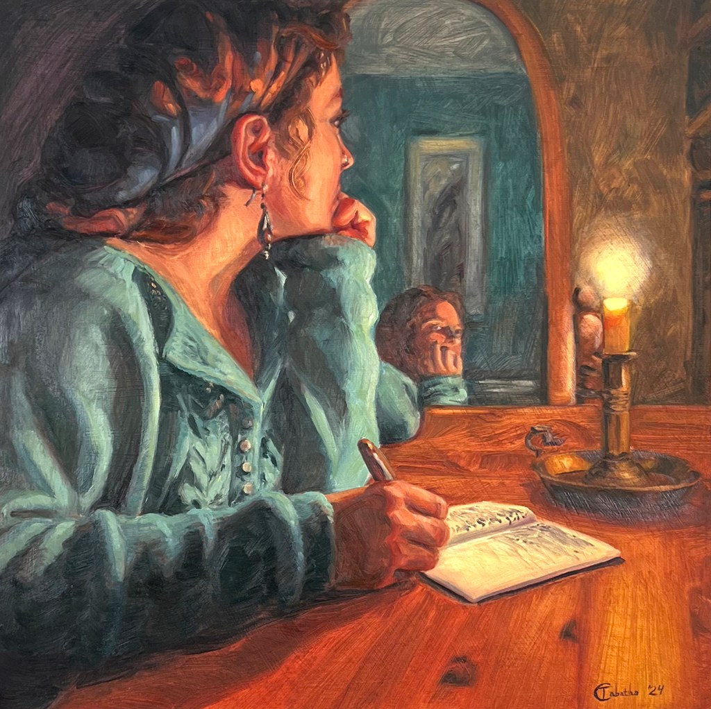 Candlelit Musings, 12″ x 12″ Oil on panel, 2024